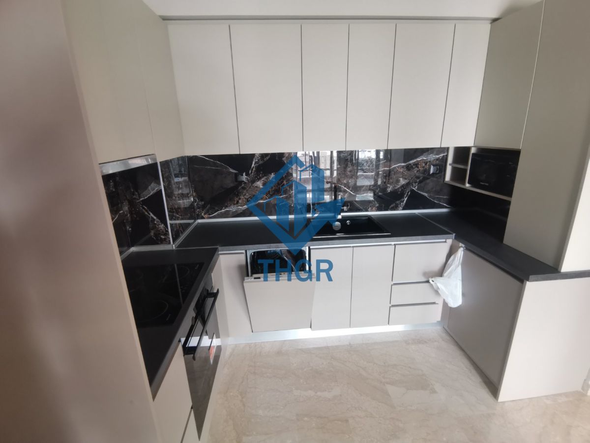 Αποτελείται από 2 υπνοδωμάτια (υπάρχει δυνατότητα 3ου υπνοδωματίου), μεγάλη σαλοκουζίνα (εντοιχισμένη ηλεκτρική κουζίνα με φούρνο - εστίες - φούρνο μικροκυμάτων και πλυντήριο πιάτων) και 1 μπάνιο.