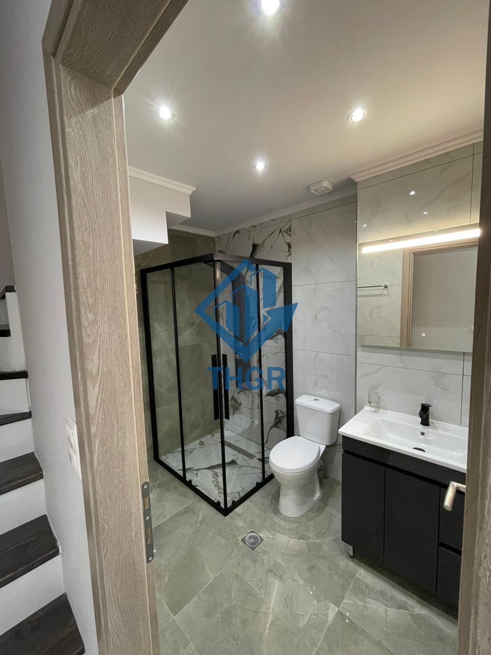 Στον ισόγειο χώρο βρίσκεται η σαλοκουζίνα με το μπάνιο και στον επάνω χώρο βρίσκεται το υπνοδωμάτιο με το wc.